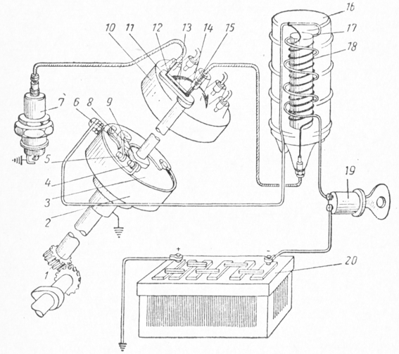 Аккумуляторная батарея машины из-за своих технических характеристик не может вырабатывать напряжение с током, которое требуется для возгорания смеси. Это связано с тем, что АКБ может выдать только ток определенной силы. А благодаря правильной работе системы величина тока значительно увеличивается, что позволяет успешно воспламенять топливовоздушную смесь.