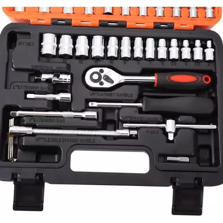 Π£Π½ΠΈΠ²Π΅ΡΡΠ°Π»ΡΠ½ΡΠΉ Π½Π°Π±ΠΎΡ ΠΈΠ½ΡΡΡΡΠΌΠ΅Π½ΡΠΎΠ² ΠΏΠΎΠΏΡΠ»ΡΡΠ½ΠΎΠΉ ΠΊΠΎΠΌΠΏΠ»Π΅ΠΊΡΠ°ΡΠΈΠΈ ΠΈΠ· 82 ΠΏΡΠ΅Π΄ΠΌΠ΅ΡΠΎΠ², ΠΊΠΎΡΠΎΡΡΠΉ Π²ΠΊΠ»ΡΡΠ°Π΅Ρ: Π½Π°Π±ΠΎΡ Π±ΠΈΡ, ΡΠΎΡΡΠ΅Π²ΡΠ΅ Π³ΠΎΠ»ΠΎΠ²ΠΊΠΈ ΡΠ°Π·Π½ΡΡ ΡΠ°Π·ΠΌΠ΅ΡΠΎΠ², Π³Π°Π΅ΡΠ½ΡΠ΅ ΠΊΠ»ΡΡΠΈ, Π³ΠΈΠ±ΠΊΠΈΠΉ ΡΠ΄Π»ΠΈΠ½ΠΈΡΠ΅Π»Ρ, Π°Π΄Π°ΠΏΡΠ΅Ρ, Π’-ΠΎΠ±ΡΠ°Π·Π½ΡΠΉ Π²ΠΎΡΠΎΡΠΎΠΊ, ΡΡΠ΅ΡΠΎΡΠΊΠ°, ΠΊΠ°ΡΠ΄Π°Π½ ΡΠ°ΡΠ½ΠΈΡΠ½ΡΠΉ ΠΈ Π΄ΡΡΠ³ΠΈΠ΅ ΠΈΠ½ΡΡΡΡΠΌΠ΅Π½ΡΡ. Π Π°Π±ΠΎΡΠΈΠ΅ ΡΠ°ΡΡΠΈ ΠΈΠ½ΡΡΡΡΠΌΠ΅Π½ΡΠΎΠ² Π²ΡΠΏΠΎΠ»Π½Π΅Π½Ρ ΠΈΠ· Ρ ΡΠΎΠΌΠ²Π°Π½Π°Π΄ΠΈΠ΅Π²ΠΎΠΉ ΡΡΠ°Π»ΠΈ. Π ΡΠΊΠΎΡΡΠΊΠΈ ΠΈΠΌΠ΅ΡΡ ΠΏΡΠΎΡΠΈΠ²ΠΎΡΠΊΠΎΠ»ΡΠ·ΡΡΠ΅Π΅ ΠΏΠΎΠΊΡΡΡΠΈΠ΅, ΠΊΠΎΡΠΎΡΠΎΠ΅ ΠΎΠ±Π΅ΡΠΏΠ΅ΡΠΈΠ²Π°Π΅Ρ Π±ΠΎΠ»Π΅Π΅ Π½Π°Π΄Π΅ΠΆΠ½ΡΠΉ Π·Π°Ρ Π²Π°Ρ ΠΈ ΠΊΠΎΠΌΡΠΎΡΡΠ½ΡΡ ΡΠ°Π±ΠΎΡΡ. ΠΠΎΡΡΠ°Π²Π»ΡΠ΅ΡΡΡ Π½Π°Π±ΠΎΡ Π² ΠΏΡΠΎΡΠ½ΠΎΠΌ ΠΏΠ»Π°ΡΡΠΈΠΊΠΎΠ²ΠΎΠΌ ΠΊΠ΅ΠΉΡΠ΅ Π΄Π»Ρ ΡΠ΄ΠΎΠ±Π½ΠΎΠΉ ΠΏΠ΅ΡΠ΅Π½ΠΎΡΠΊΠΈ ΠΈ Ρ ΡΠ°Π½Π΅Π½ΠΈΡ. ΠΠΎΡΡΠ°Π²ΠΊΠ° ΡΠΎ ΡΠΊΠ»Π°Π΄Π° Π Π€.Β Β