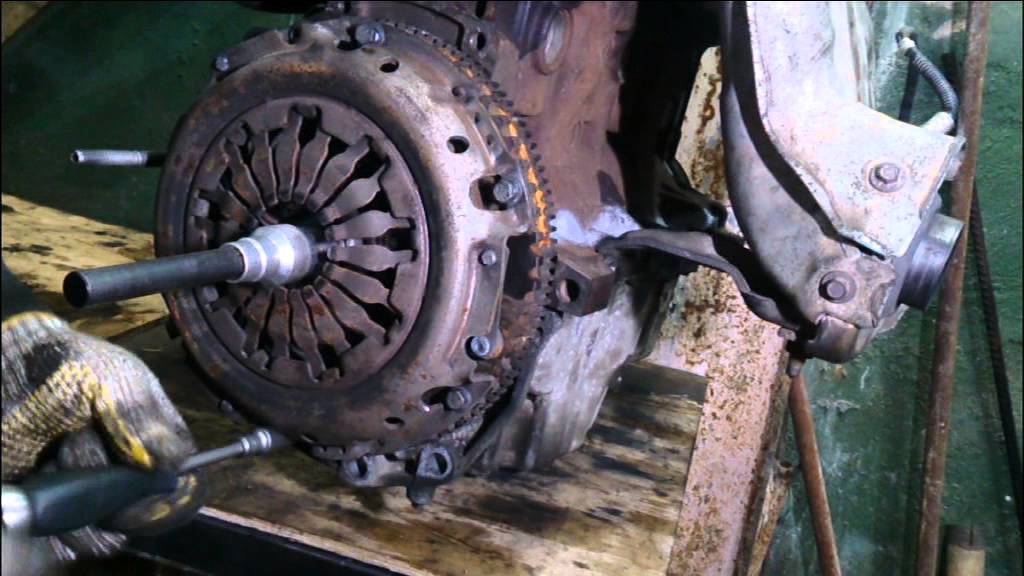 Но если потребуется замена всего узла сцепления в сборе вместе с вилкой (а иногда и заменой маховика), то без снятия трансмиссии здесь не обойтись.