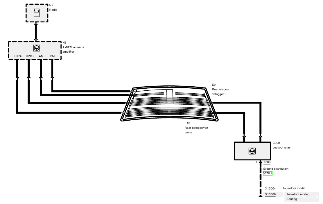 В условиях повышенной температуры, когда остекление постоянно запотевает, обогрев ветрового стекла, можно переключить на схему «Юг». В этом случае будут одновременно включаться оба контура. При этом мощность подогрева понижается на 2/3 и этого вполне достаточно для эффективной борьбы с запотеванием.