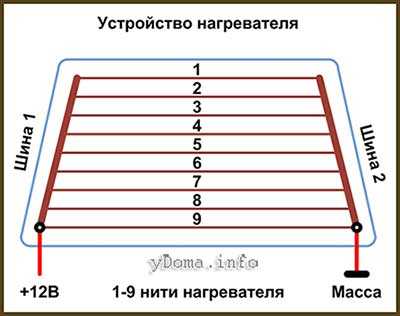 Ремонт обогрева заднего стекла: схема обогрева