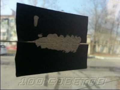 — Далее обезжириваем стекло в этом районе. Для этого подойдет простой стеклоочиститель.