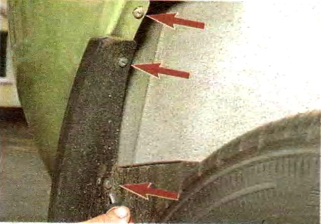 - Удалить 2 пары саморезов, которые фиксируют подкрылки.