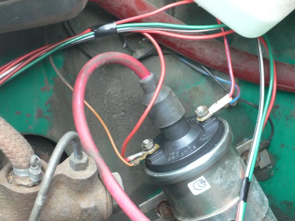 Соединение центрального провода катушки зажигания с крышкой трамблера.