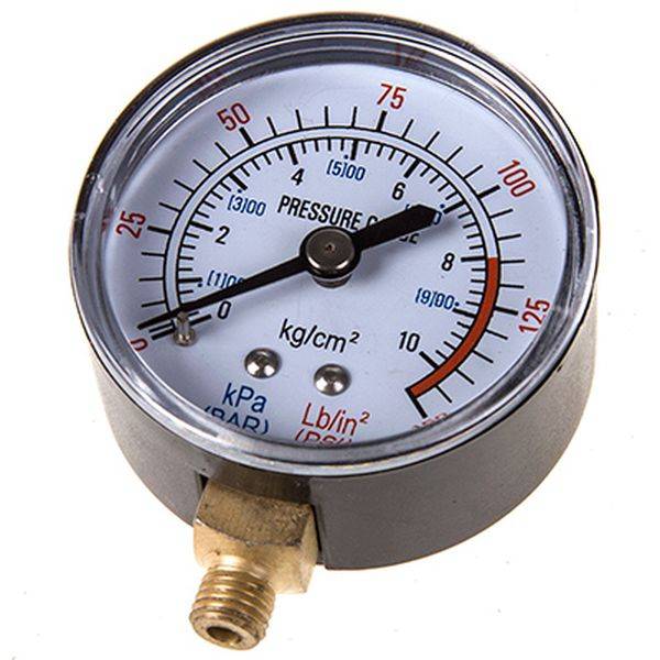 Теперь можно проверять. В выключенном состоянии насос ничего не показывает на манометре, и стрелка лежит в положении нижней мертвой точки.