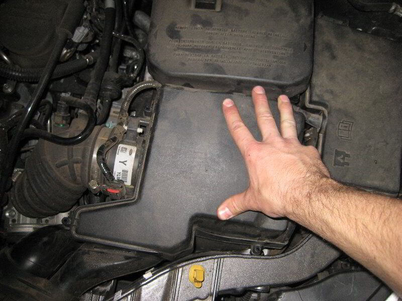 2.Этот фильтр представляет собой воздушный фильтр двигателя, расположенный под капотом, а НЕ за перчаточным ящиком.